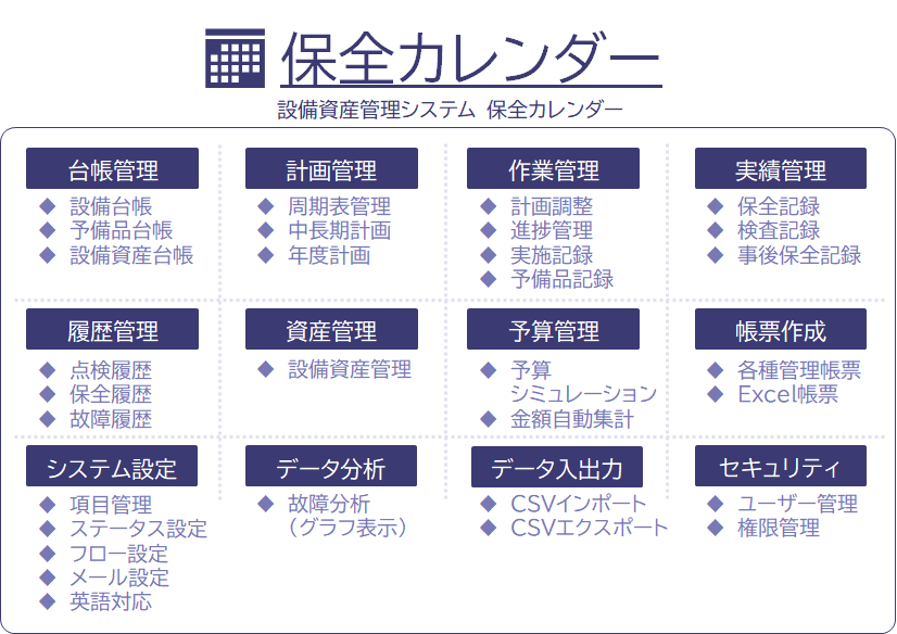 保全カレンダーの主な機能