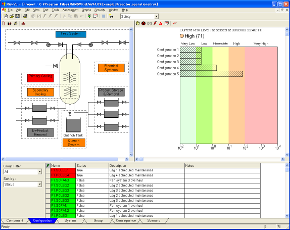 RiskVu は、現在の安全評価を行うためのソフトウェアです。 エンジニアリングユーザーが作成したシステムに対する複数の FaultTree+ 分析をもとに、 オペレーターが、システム全体の現在のリスクを評価することが出来ます。